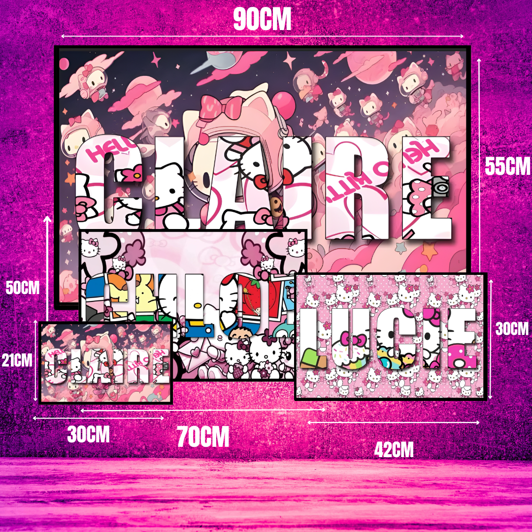Nos dessins personnalisés sont disponibles en 4 formats différents pour s’adapter à tous les espaces. Que ce soit pour une grande déco murale ou un petit clin d’œil sur ton bureau.