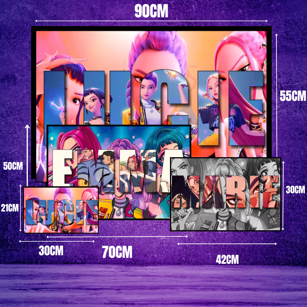 Nos dessins personnalisés sont disponibles en 4 formats différents pour s’adapter à tous les espaces. Que ce soit pour une grande déco murale ou un petit clin d’œil sur ton bureau.