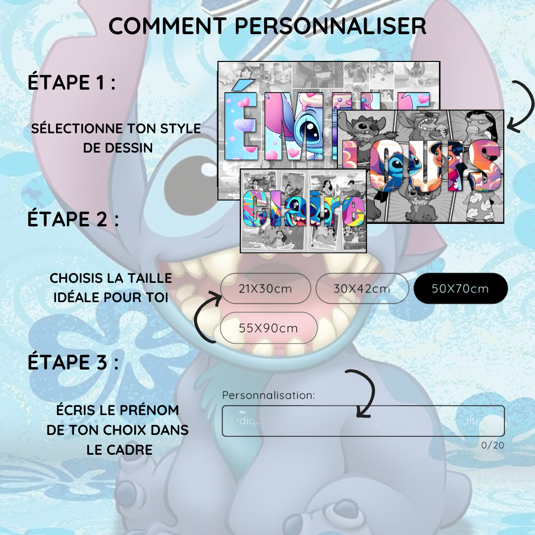 Personnaliser ton dessin est un jeu d’enfant ! Choisis votre style préféré, sélectionne la taille idéale, ajoute un prénom… et reçois une création unique chez toi !