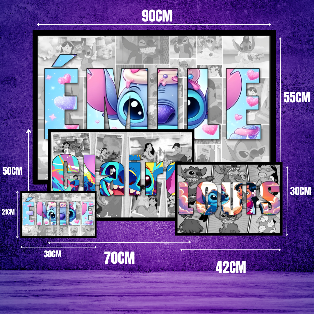 Nos dessins personnalisés sont disponibles en 4 formats différents pour s’adapter à tous les espaces. Que ce soit pour une grande déco murale ou un petit clin d’œil sur ton bureau.